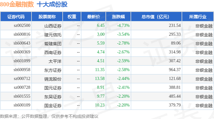 800金融(000974)指数十大成份股详情如下: