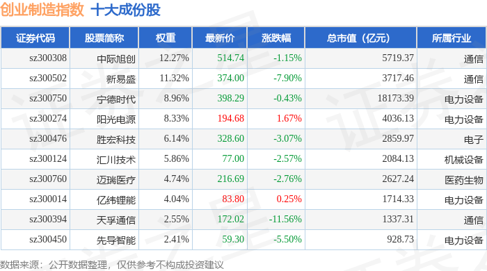证券之星消息,10月30日,创业制造(399261)指数报收于6275.88点,跌1.97%,成交2139.05亿元,换手率3.98%。当日该指数成份股中,上涨的有12家,天华新能以14.69%的涨幅领涨,下跌的有38家,天孚通信以11.56%的跌幅领跌。
