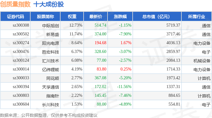证券之星消息,10月30日,创质量(399269)指数报收于8017.86点,跌2.79%,成交2082.35亿元,换手率4.5%。当日该指数成份股中,上涨的有17家,博俊科技以6.19%的涨幅领涨,下跌的有83家,天孚通信以11.56%的跌幅领跌。