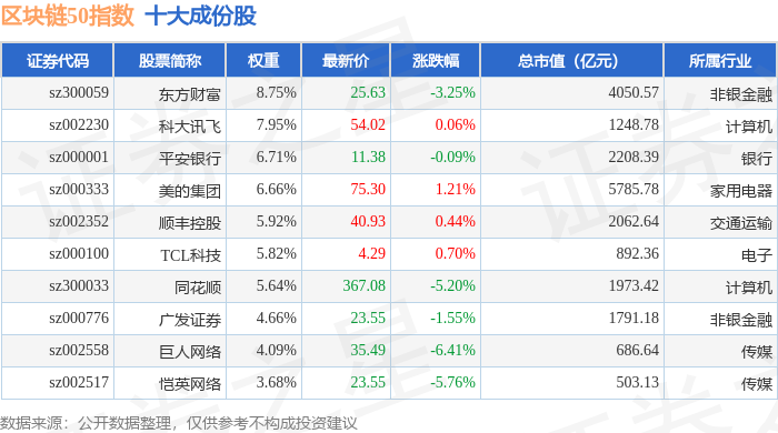 证券之星消息,10月30日,区块链50(399286)指数报收于4114.5点,跌1.55%,成交744.44亿元,换手率3.16%。当日该指数成份股中,上涨的有11家,神州信息以9.98%的涨幅领涨,下跌的有39家,顺网科技以7.6%的跌幅领跌。