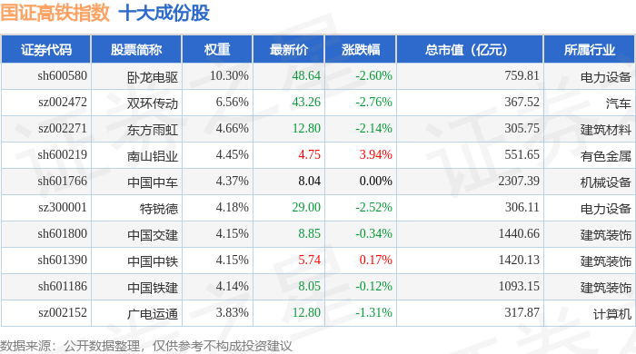 国证高铁(399419)指数十大成份股详情如下: