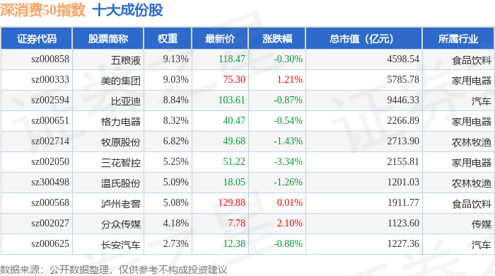 资金流向方面,深消费50(399646)指数成份股当日主力资金净流出合计33.32亿元,游资资金净流入合计5.47亿元,散户资金净流入合计27.86亿元。成份股资金流向详情见下表: