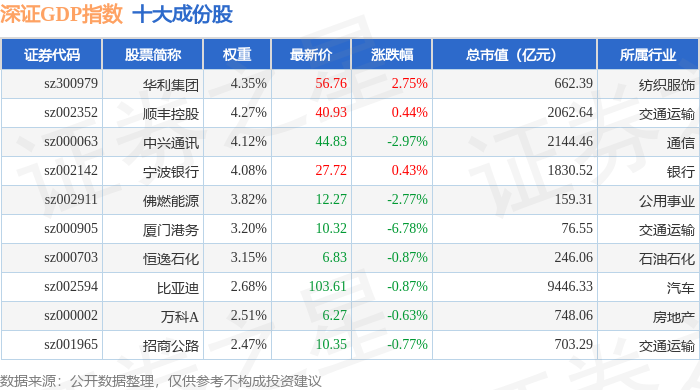 深证GDP(399648)指数十大成份股详情如下: