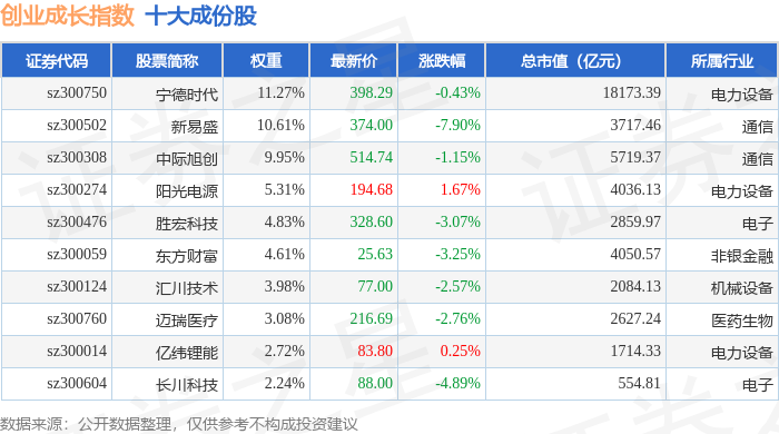 证券之星消息,10月30日,创业成长(399667)指数报收于5506.84点,跌2.49%,成交2320.29亿元,换手率4.07%。当日该指数成份股中,上涨的有10家,欣旺达以10.14%的涨幅领涨,下跌的有39家,天孚通信以11.56%的跌幅领跌。