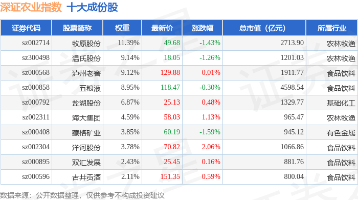 资金流向方面,深证农业(399669)指数成份股当日主力资金净流出合计10.25亿元,游资资金净流入合计1.32亿元,散户资金净流入合计8.93亿元。成份股资金流向详情见下表: