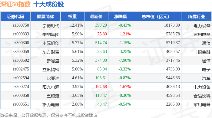 深证50(399850)指数十大成份股详情如下: