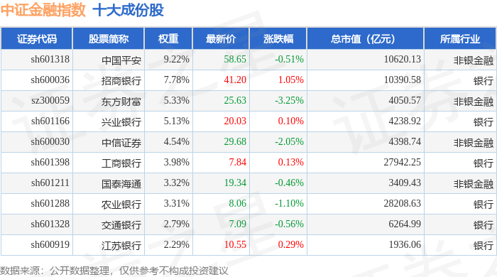 中证金融(399934)指数十大成份股详情如下: