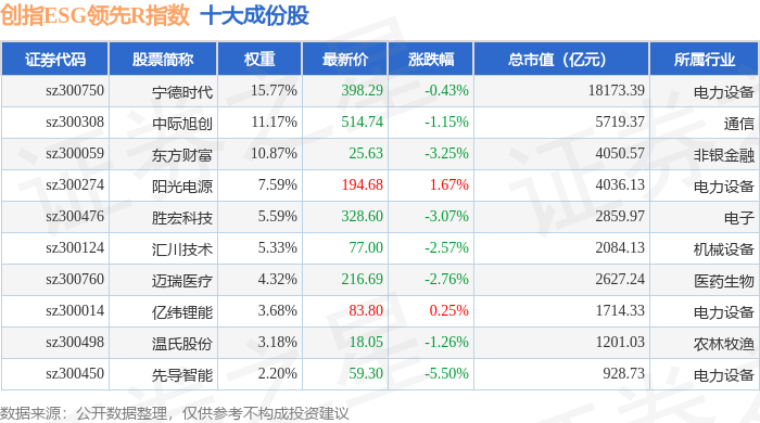创指ESG领先R(470031)指数十大成份股详情如下: