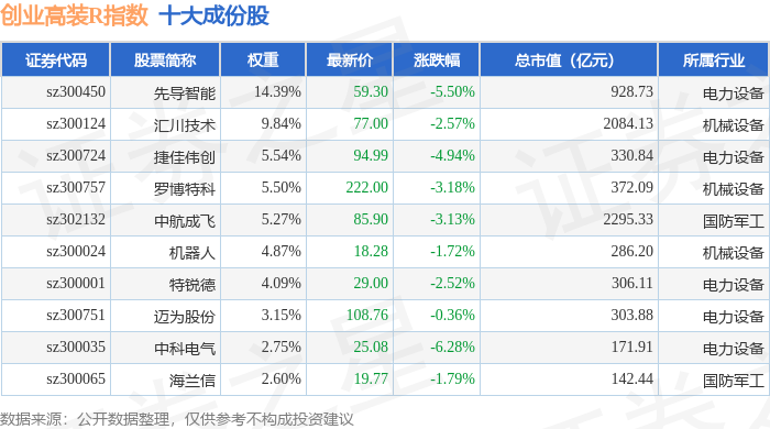 创业高装R(470040)指数十大成份股详情如下: