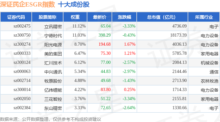深证民企ESGR(470056)指数十大成份股详情如下: