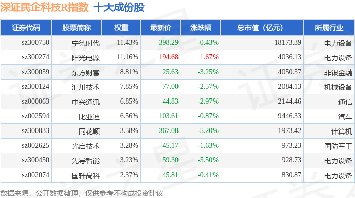 深证民企科技R(470059)指数十大成份股详情如下: