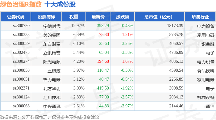 资金流向方面,绿色治理R(480058)指数成份股当日主力资金净流出合计120.79亿元,游资资金净流入合计38.52亿元,散户资金净流入合计82.27亿元。成份股资金流向详情见下表: