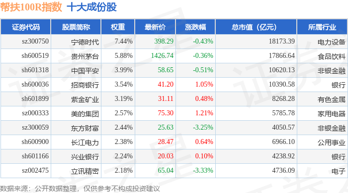 资金流向方面,帮扶100R(480065)指数成份股当日主力资金净流出合计203.05亿元,游资资金净流入合计65.89亿元,散户资金净流入合计137.17亿元。成份股资金流向详情见下表: