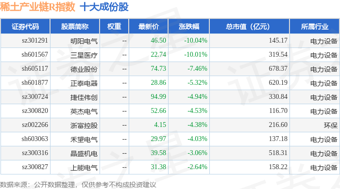 稀土产业链R(489013)指数十大成份股详情如下:
