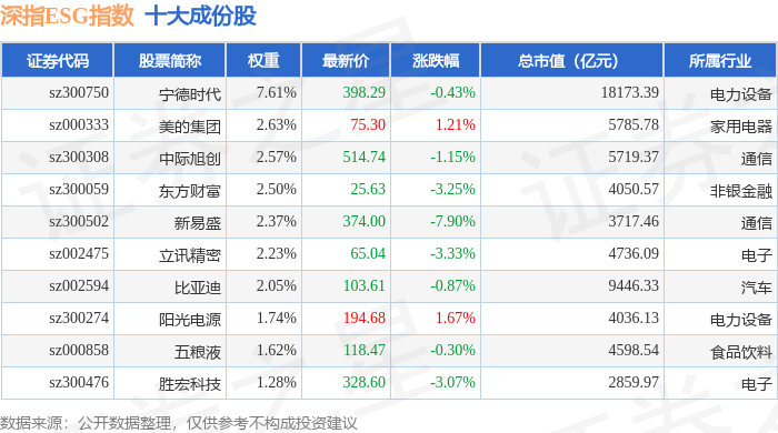 资金流向方面,深指ESG(970026)指数成份股当日主力资金净流出合计350.43亿元,游资资金净流入合计108.97亿元,散户资金净流入合计241.46亿元。成份股资金流向详情见下表:
