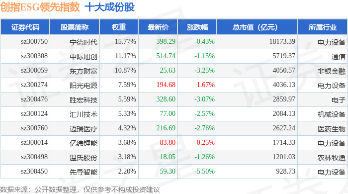 资金流向方面,创指ESG领先(970031)指数成份股当日主力资金净流出合计84.34亿元,游资资金净流入合计37.58亿元,散户资金净流入合计46.76亿元。成份股资金流向详情见下表: