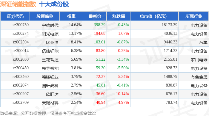 资金流向方面,深证储能(970036)指数成份股当日主力资金净流出合计62.39亿元,游资资金净流入合计15.23亿元,散户资金净流入合计47.16亿元。成份股资金流向详情见下表: