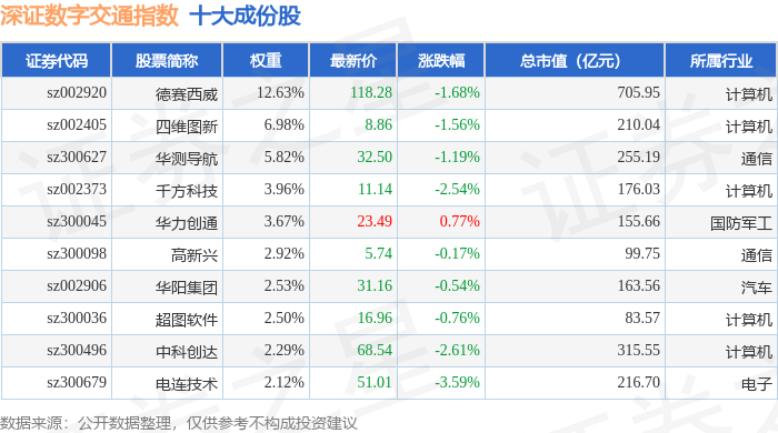 资金流向方面,深证数字交通(970049)指数成份股当日主力资金净流出合计4.98亿元,游资资金净流入合计4285.69万元,散户资金净流入合计4.55亿元。成份股资金流向详情见下表: