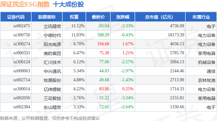 深证民企ESG(970056)指数十大成份股详情如下: