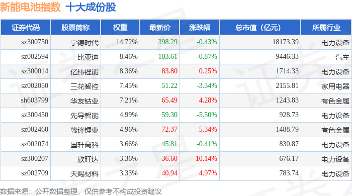新能电池(980032)指数十大成份股详情如下: