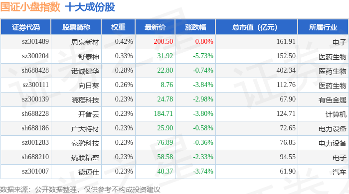 国证小盘(980202)指数十大成份股详情如下: