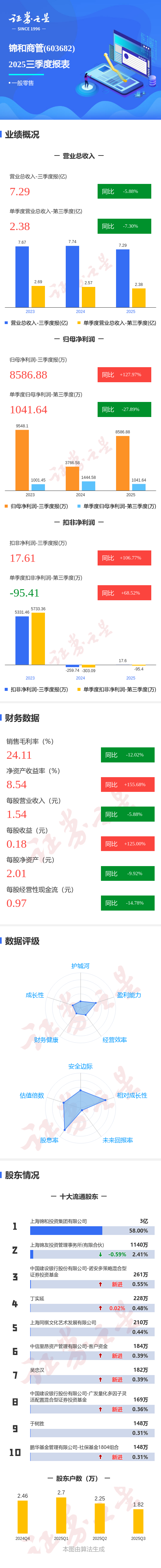 证券之星消息,锦和商管2025年三季报显示,前三季度公司主营收入7.29亿元,同比下降5.89%;归母净利润8586.88万元,同比上升127.98%;扣非净利润17.61万元,同比上升106.78%;其中2025年第三季度,公司单季度主营收入2.38亿元,同比下降7.31%;单季度归母净利润1041.64万元,同比下降27.89%;单季度扣非净利润-95.41万元,同比上升68.52%;负债率79.93%,投资收益79.41万元,财务费用1.27亿元,毛利率24.11%。