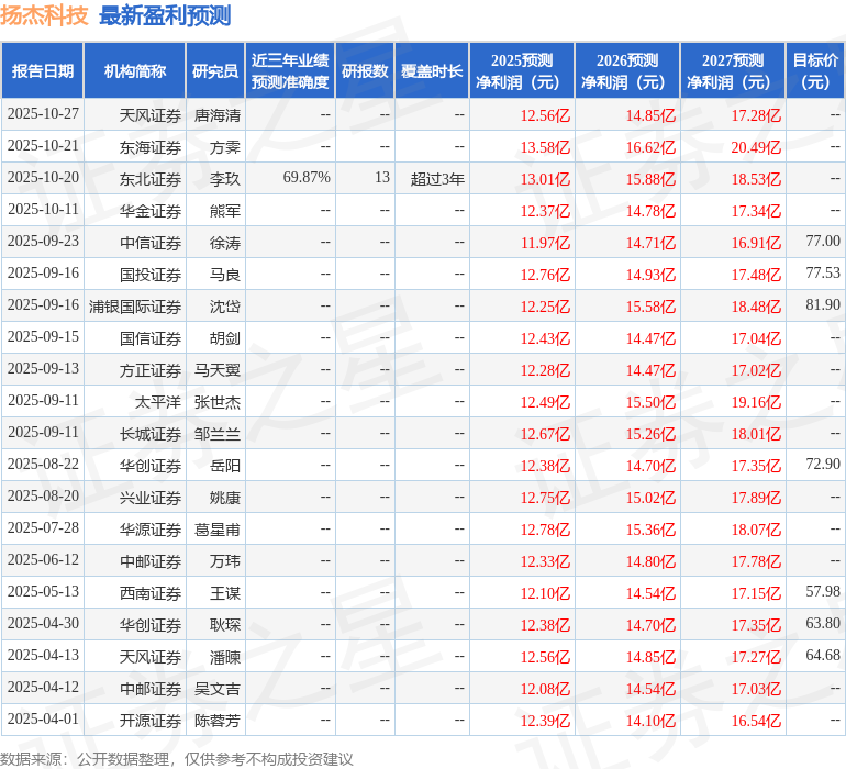 最新盈利预测明细如下: