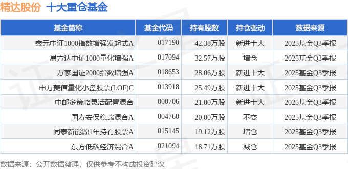 持有精达股份最多的基金为鑫元中证1000指数增强发起式A,目前规模为1.28亿元,最新净值1.3193(10月30日),较上一交易日下跌1.06%,近一年上涨28.42%。该基金现任基金经理为刘宇涛。