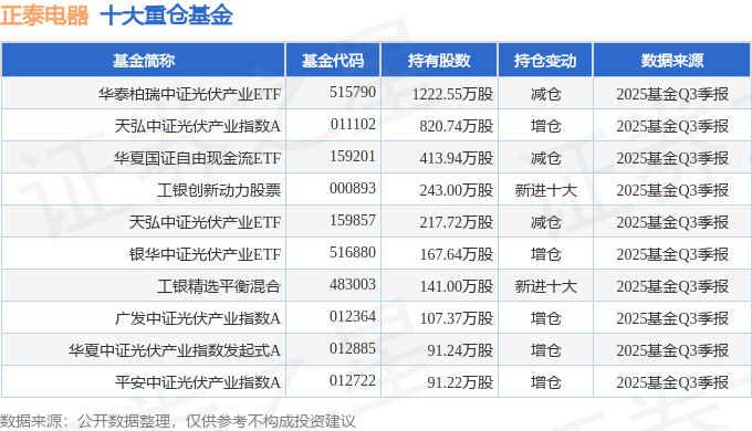 持有正泰电器最多的基金为华泰柏瑞中证光伏产业ETF,目前规模为139.76亿元,最新净值1.0066(10月30日),较上一交易日下跌0.16%,近一年上涨16.29%。该基金现任基金经理为李茜 李沐阳。