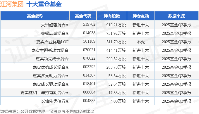 持有江河集团最多的基金为交银趋势混合A,目前规模为31.93亿元,最新净值5.0583(10月30日),较上一交易日下跌0.83%,近一年上涨23.59%。该基金现任基金经理为杨金金。