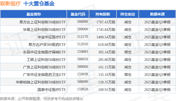 持有联影医疗最多的基金为易方达上证科创板50成份ETF,目前规模为767.61亿元,最新净值1.4863(10月30日),较上一交易日下跌1.87%,近一年上涨53.22%。该基金现任基金经理为林伟斌 成曦。