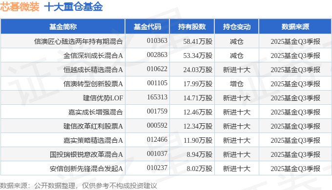 持有芯碁微装最多的基金为信澳匠心臻选两年持有期混合,目前规模为17.38亿元,最新净值1.4673(10月29日),较上一交易日上涨2.44%,近一年上涨56.23%。该基金现任基金经理为朱然。