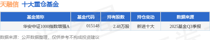 持有天融信最多的基金为华安中证1000指数增强A,目前规模为0.46亿元,最新净值1.0785(10月30日),较上一交易日下跌0.89%,近一年上涨28.95%。该基金现任基金经理为张序。