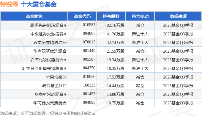 持有特锐德最多的基金为鹏扬先进制造混合A,目前规模为5.15亿元,最新净值0.8088(10月29日),较上一交易日上涨1.61%,近一年上涨27.57%。该基金现任基金经理为张勋。