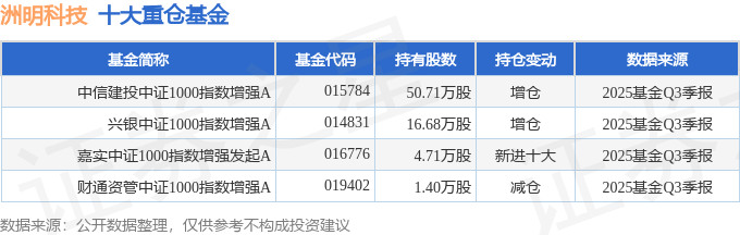 持有洲明科技最多的基金为中信建投中证1000指数增强A,目前规模为2.36亿元,最新净值1.3616(10月30日),较上一交易日下跌0.97%,近一年上涨36.49%。该基金现任基金经理为王鹏。
