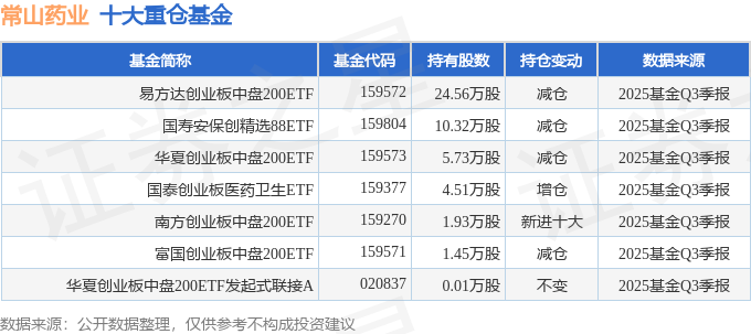 持有常山药业最多的基金为易方达创业板中盘200ETF,目前规模为6.44亿元,最新净值1.4284(10月30日),较上一交易日下跌1.31%,近一年上涨21.3%。该基金现任基金经理为李树建。