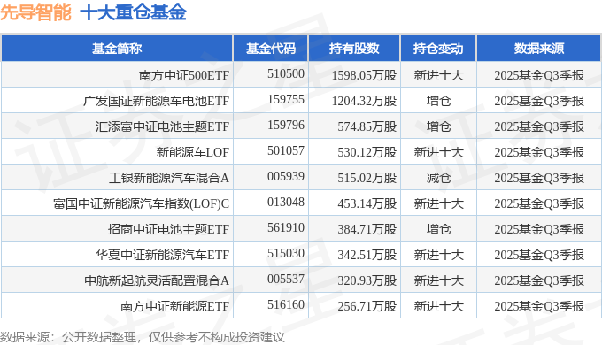 持有先导智能最多的基金为南方中证500ETF,目前规模为400.98亿元,最新净值7.4934(10月30日),较上一交易日下跌1.25%,近一年上涨30.53%。该基金现任基金经理为罗文杰。
