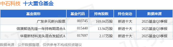 持有中石科技最多的基金为广发多元新兴股票,目前规模为22.9亿元,最新净值2.0021(10月30日),较上一交易日下跌1.85%,近一年上涨30.95%。该基金现任基金经理为周智硕。