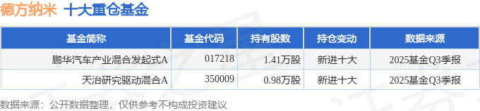 持有德方纳米最多的基金为鹏华汽车产业混合发起式A,目前规模为0.14亿元,最新净值1.0574(10月30日),较上一交易日下跌0.75%,近一年上涨17.97%。该基金现任基金经理为梁超。