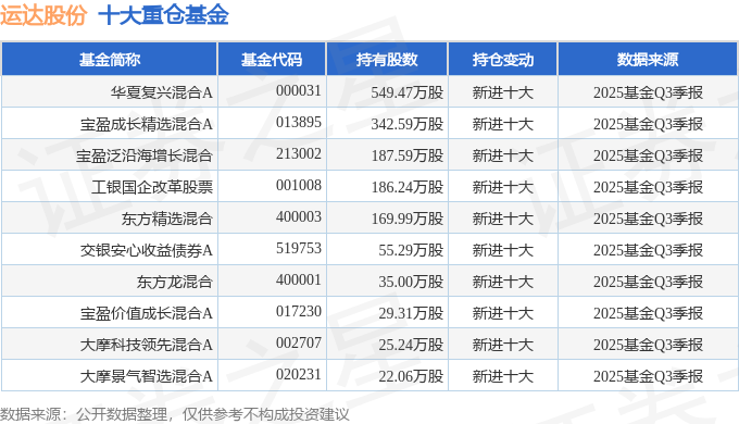 持有运达股份最多的基金为华夏复兴混合A,目前规模为18.64亿元,最新净值2.628(10月30日),较上一交易日下跌0.68%,近一年上涨33.97%。该基金现任基金经理为郑煜 黄皓。