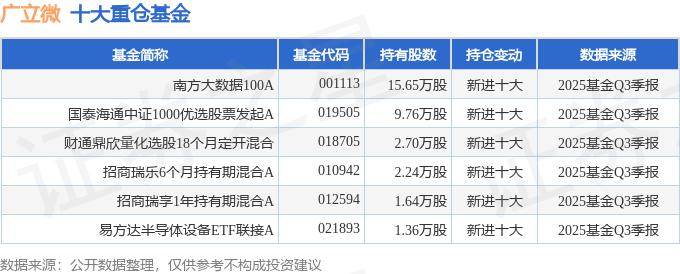 持有广立微最多的基金为南方大数据100A,目前规模为13.42亿元,最新净值0.8876(10月30日),较上一交易日下跌1.01%,近一年上涨23.0%。该基金现任基金经理为解锐。