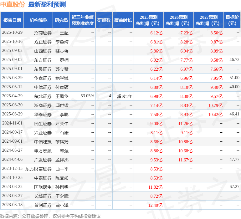 最新盈利预测明细如下: