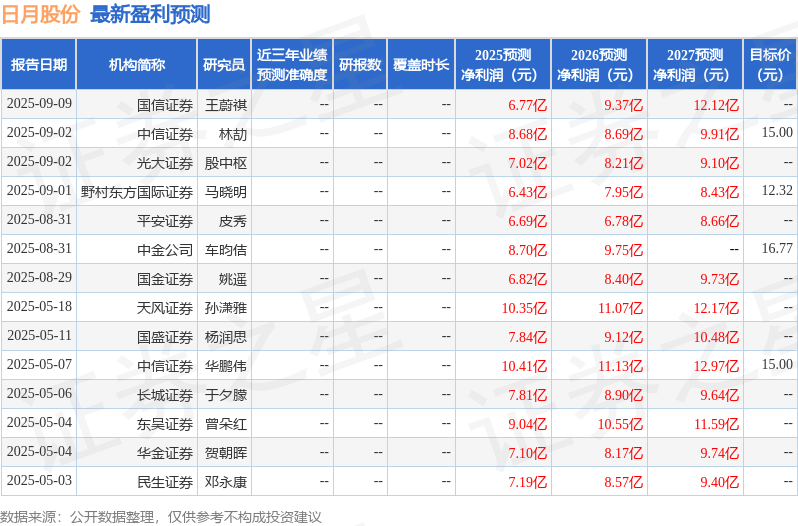 最新盈利预测明细如下: