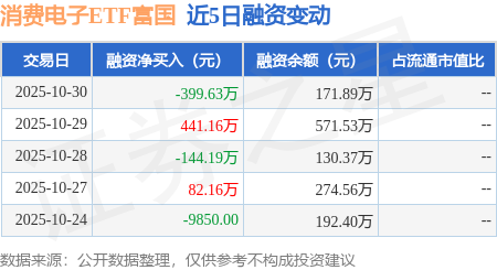 证券之星消息,10月30日,消费电子ETF富国(561100)融资买入144.18万元,融资偿还543.82万元,融资净卖出399.63万元,融资余额171.89万元,近20个交易日中有13个交易日出现融资净买入。