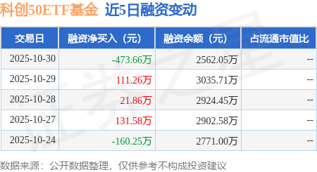 证券之星消息,10月30日,科创50ETF基金(588180)融资买入216.73万元,融资偿还690.38万元,融资净卖出473.66万元,融资余额2562.05万元,近20个交易日中有11个交易日出现融资净买入。