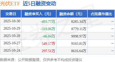 证券之星消息,10月30日,光伏ETF(159857)融资买入2123.88万元,融资偿还2617.65万元,融资净卖出493.77万元,融资余额8285.34万元,近20个交易日中有12个交易日出现融资净买入。