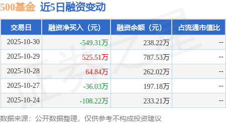 证券之星消息,10月30日,500基金(159337)融资买入17.91万元,融资偿还567.23万元,融资净卖出549.31万元,融资余额238.22万元。