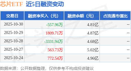证券之星消息,10月30日,芯片ETF(159995)融资买入8473.91万元,融资偿还9031.86万元,融资净卖出557.96万元,融资余额4.81亿元,近20个交易日中有13个交易日出现融资净买入。