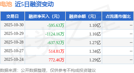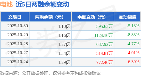 证券之星消息,10月30日,电池(159796)融资买入3775.75万元,融资偿还4371.38万元,融资净卖出595.63万元,融资余额1.1亿元。