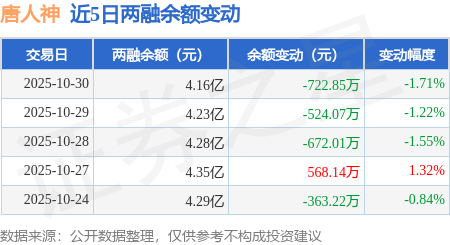 证券之星消息,10月30日,唐人神(002567)融资买入1180.04万元,融资偿还1903.79万元,融资净卖出723.75万元,融资余额4.14亿元。